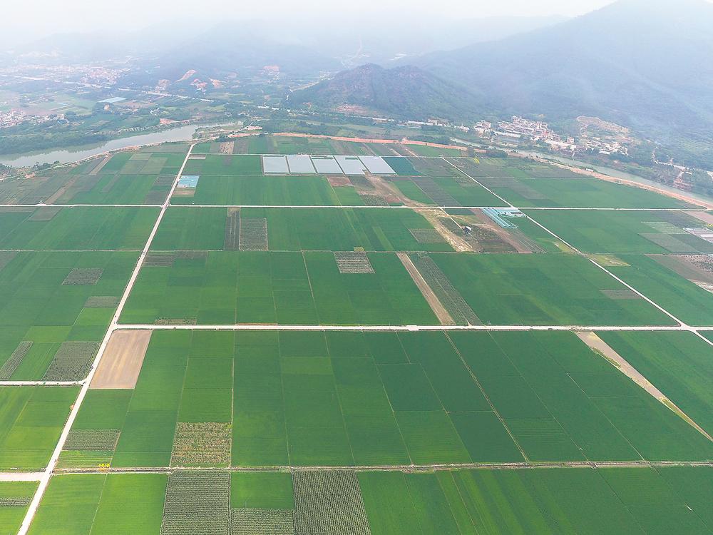 航拍下,康莊村3000多畝農(nóng)田滿眼綠色。