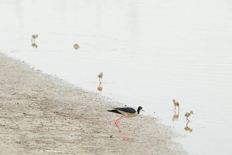 正在“帶娃”的黑翅長腳鷸。福建閩江河口濕地國家級自然保護區(qū)管理處供圖