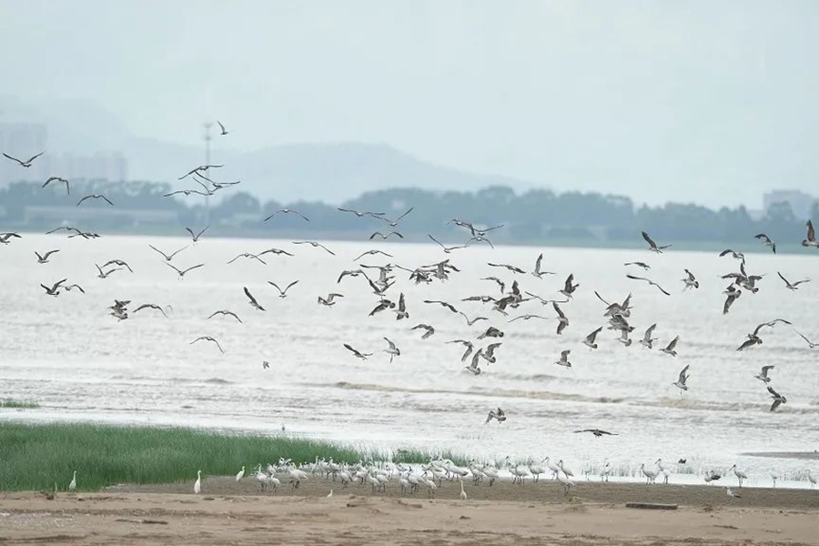 閩江河口濕地上群鳥翔集。福建閩江河口濕地國家級自然保護區(qū)管理處供圖