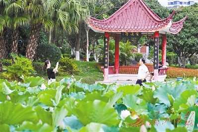 市區(qū)綬溪公園荷花綻放。 楊怡玲 攝