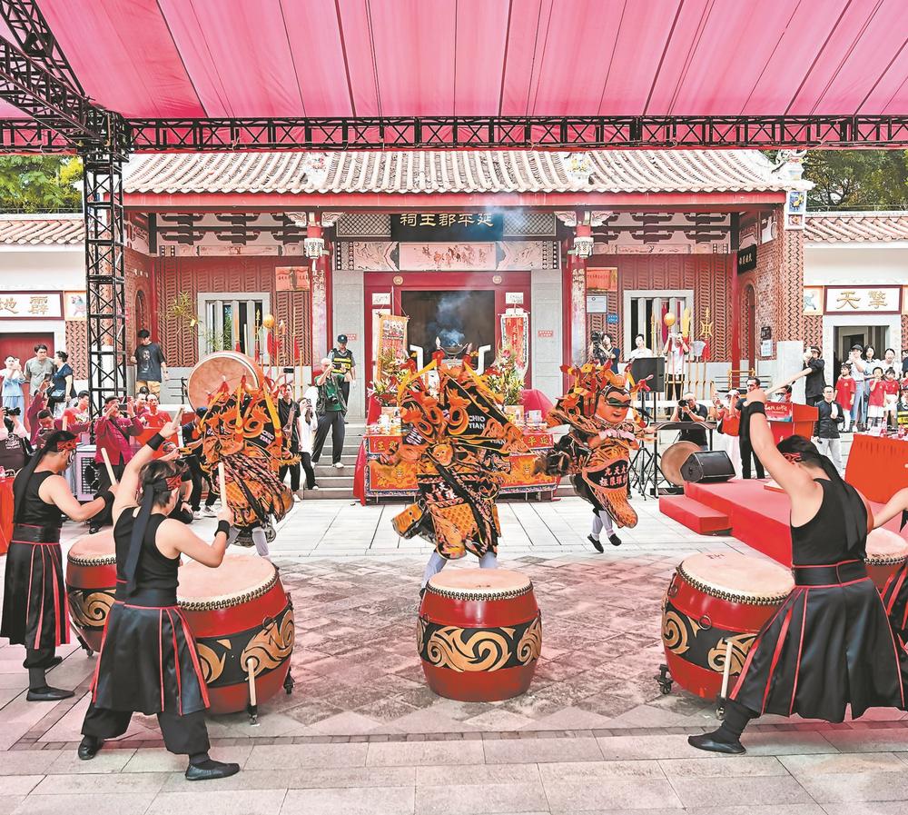 與此同時(shí),在一水之隔的臺(tái)灣新北金山承天宮,由臺(tái)灣民間組織舉辦的“海峽兩岸鄭成功文化節(jié)”海陸巡境祭祀活動(dòng)也同步展開。