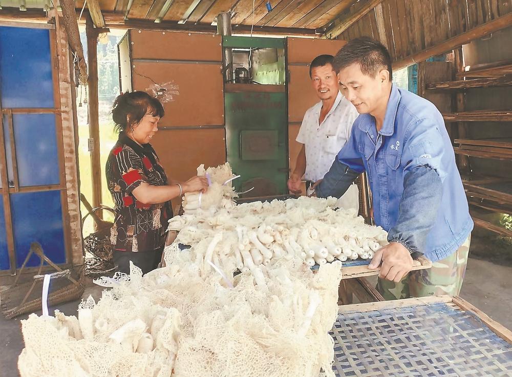 眼下,順昌縣進入竹蓀采收季節(jié)。當?shù)卮蟾涉?zhèn)慈悲村的竹蓀種植基地的竹蓀長勢良好,菇農(nóng)忙著采收剝皮。“今年我家種了10畝竹蓀,竹蓀干品預計可達750多公斤,收入有望突破20萬元。”村民何小鳳說。