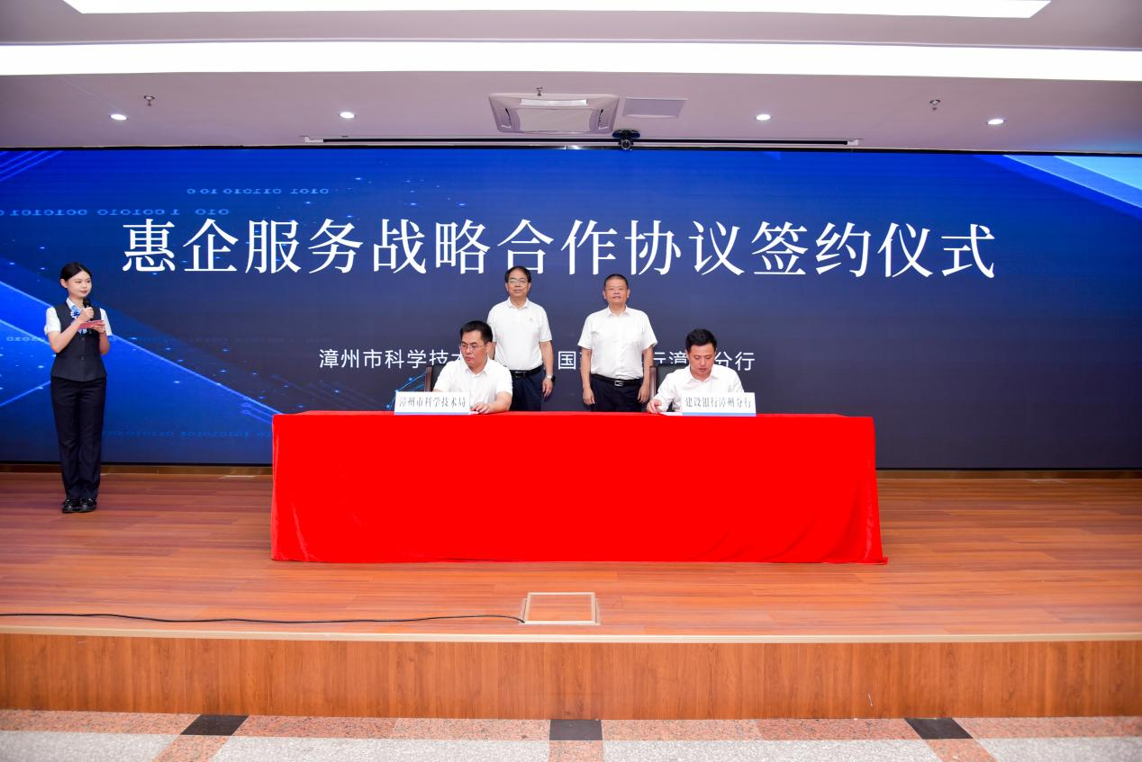 漳州市科技局黨組書記、局長林鷺,建行漳州分行黨委書記、行長丁映暉參加對接會并致辭,漳州市科技局黨組成員、二級調研員林志宏與建行漳州分行副行長黃燦燦代表雙方簽署惠企服務戰(zhàn)略合作協(xié)議,建行漳州分行營業(yè)部客戶經(jīng)理徐嫻婧現(xiàn)場作了針對相關合作業(yè)務的推介。