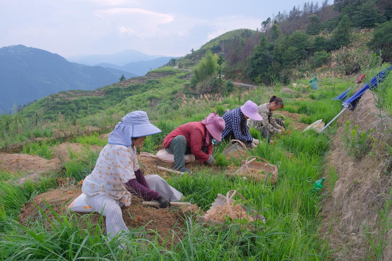 “我們年紀(jì)大了也出去不了,干不了重活,在家周邊挖太子參輕松不費(fèi)力,一天能拿到一百多塊錢?!碧K家洋村村民張宗鈴一邊挖著太子參一邊說道。像張宗鈴一樣在村的群眾很多都把自家的土地流轉(zhuǎn)給村內(nèi)合作社,在能夠收取租金的同時(shí),還能在村內(nèi)務(wù)工,極大增加了村內(nèi)群眾的收入渠道。