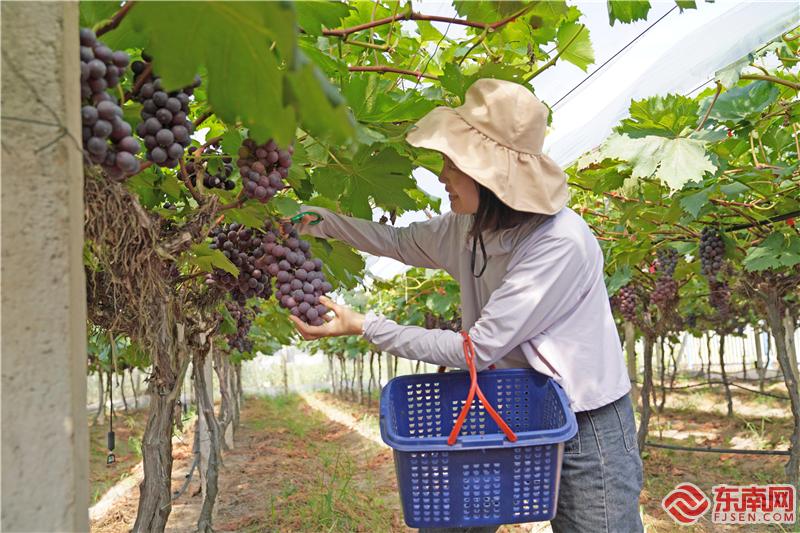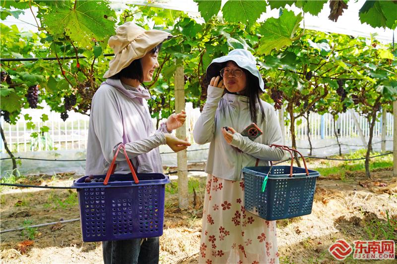 7月17日,走進三明市泰寧縣朱口鎮(zhèn)神后垅智慧葡萄基地內(nèi),葡萄架上已掛滿了透亮圓潤的葡萄,吸引了不少市民前來觀光采摘。
