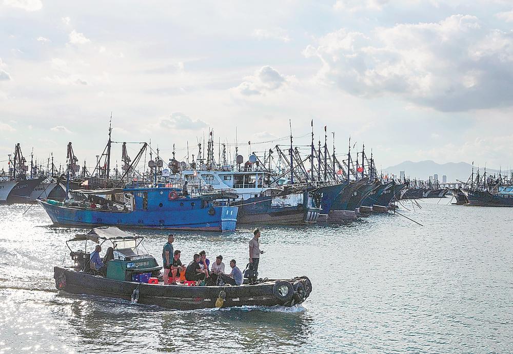 我省扎實(shí)做好防御“杜蘇芮”臺(tái)風(fēng)各項(xiàng)工作。圖為在廈門高崎漁港,船員正有序上岸避風(fēng)。林梓健 攝