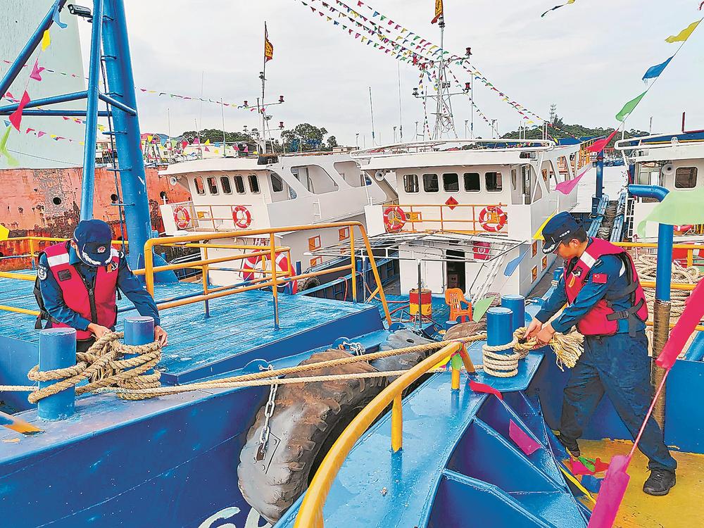 24日,漳州海警局成立多個(gè)防臺(tái)風(fēng)小分隊(duì),分赴漳州沿海各區(qū)、縣的重點(diǎn)漁村碼頭、漁船漁排及港灣海域,幫助靠港漁船固定錨鏈、加固纜繩、檢查船上安全設(shè)備。蔣禮釧 黃祥瑞 攝