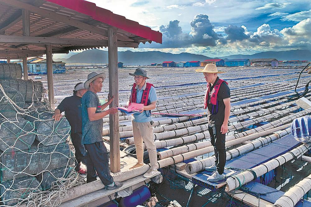 5日,在霞浦縣溪南鎮(zhèn)七星漁排,鎮(zhèn)村干部全力動(dòng)員和勸離漁民回港避風(fēng),確保人民生命財(cái)產(chǎn)安全。朱世剛 攝