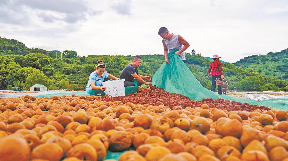 7月31日,福安市潭頭鎮(zhèn)武陵溪畔,當(dāng)?shù)毓r(nóng)正在搶收芙蓉李干。潭頭鎮(zhèn)現(xiàn)有芙蓉李種植面積3.8萬(wàn)畝,預(yù)計(jì)今年產(chǎn)值可達(dá)1.8億多元。