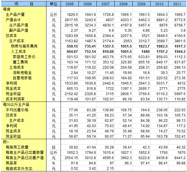數(shù)據(jù)來源:《2012全國農(nóng)產(chǎn)品成本收益資料匯編》。