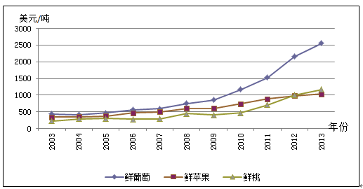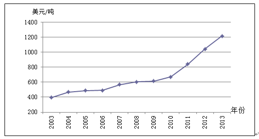 圖11 2003-2013鮮冷凍水果進口均價變化