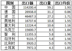 表7 2012年世界前十大蘋果汁出口國蘋果汁出口情況