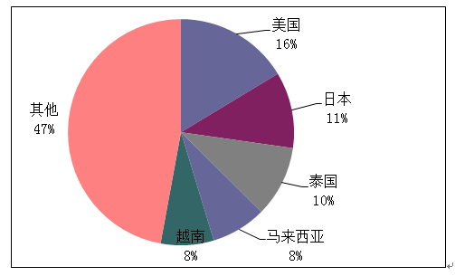圖52013年我國水果出口市場結(jié)構(gòu)
