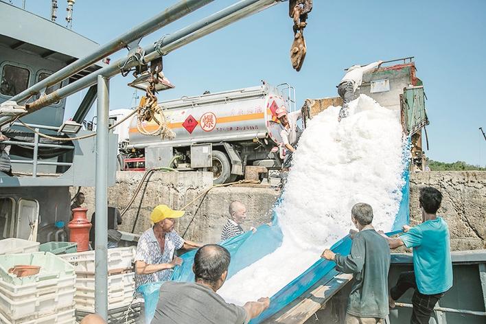 碎冰傳送上船用于漁獲保鮮 記者 沈昊鵬 攝