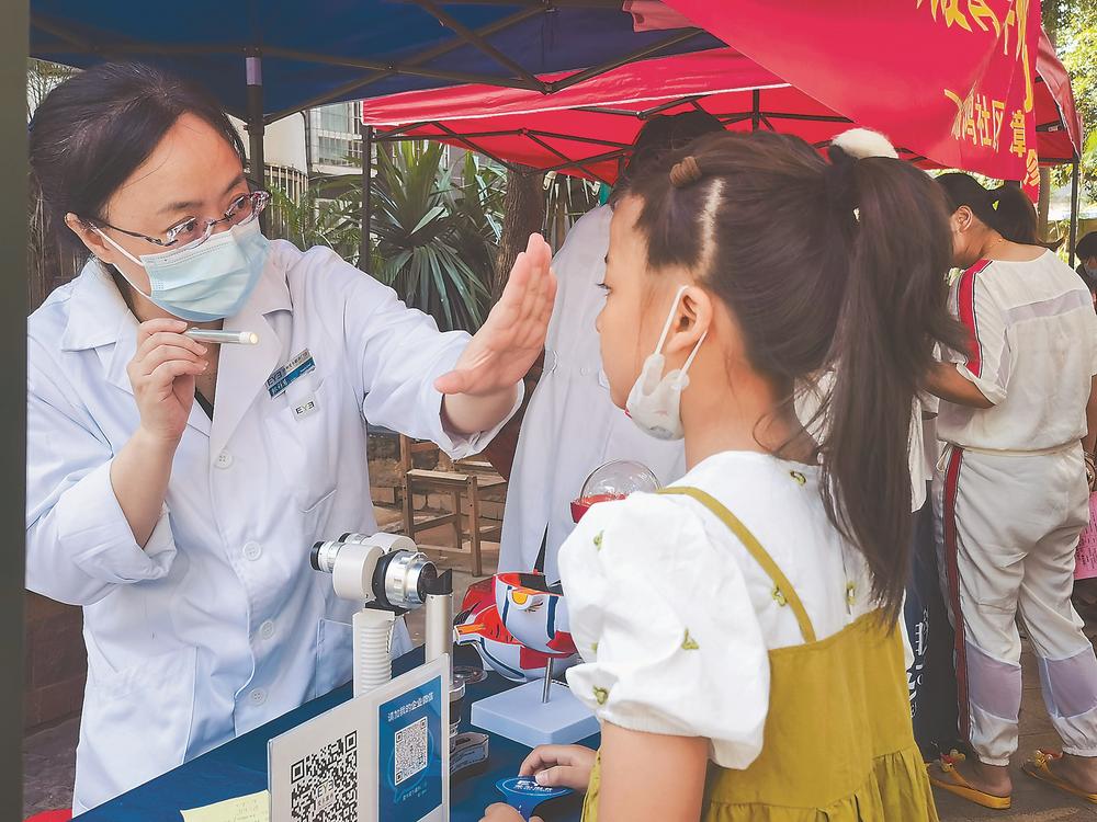 18日,漳州市薌城區(qū)芝山街道開展“守護明眸 健康未來”關愛青少年視力健康活動,免費提供視力篩查和屈光檢測,并通過發(fā)放宣傳手冊、互動提問、講解咨詢等方式,普及愛眼護眼知識,幫助青少年增強愛眼護眼意識,科學正確預防近視。