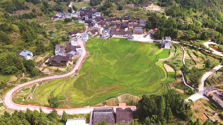暑去秋來,寧德壽寧縣竹管垅鄉(xiāng)李家洋村的田間地頭仍然披著一襲“綠裝”。從空中俯瞰,古民居、青山與集中連片的稻田相接,共同組成一幅秀美的田園畫卷。李家洋村黨支部書記、村委會主任葉貴榮說:“今年水稻的長勢很好,預(yù)計到國慶節(jié)前后就能收獲了?!?/p>