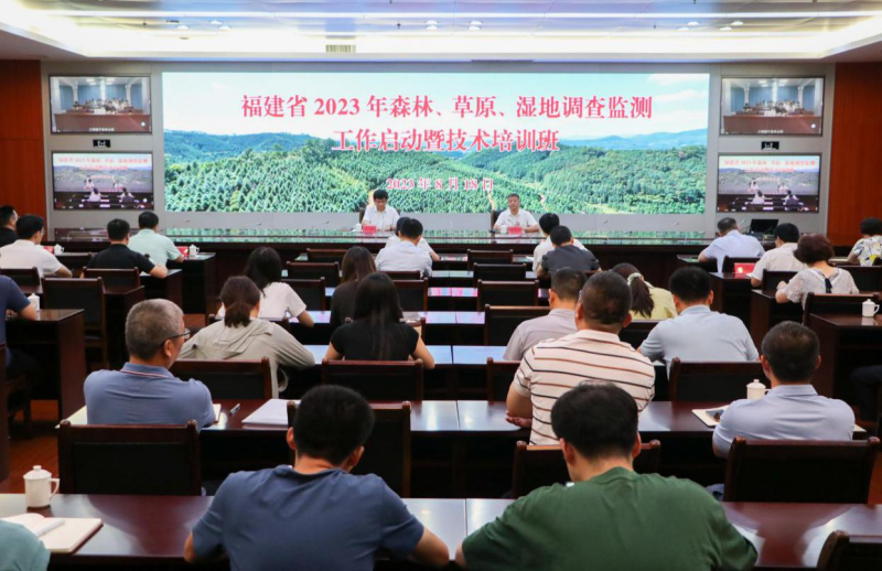 福建省6月啟動森林、草原、濕地樣地調(diào)查工作以來,全省上下聯(lián)動,多措并舉,緊鑼密鼓開展樣地調(diào)查,有序推動圖斑監(jiān)測前期工作,截止到8月18日樣地調(diào)查已完成今年任務(wù)的67.28%。18日上午,福建省林業(yè)局、福建省自然資源廳在福州組織召開2023年全省森林、草原、濕地圖斑監(jiān)測工作啟動會,正式啟動2023年林草濕圖斑監(jiān)測工作,并開展了圖斑監(jiān)測技術(shù)培訓(xùn)。本次啟動會采用線上線下相結(jié)合方式開展,省自然資源廳黨組成員、總工程師林輝主持會議,省林業(yè)局謝再鐘一級巡視員出席會議并講話,省林草濕圖斑監(jiān)測工作專班人員、省林業(yè)局有關(guān)單位主要領(lǐng)導(dǎo)及業(yè)務(wù)骨干參加了現(xiàn)場培訓(xùn),各市、縣(區(qū))自然資源主管部門與林業(yè)主管部門、平潭綜合實驗區(qū)資源生態(tài)局、武夷山國家公園管理局有關(guān)人員共200余人參加了視頻培訓(xùn)。
