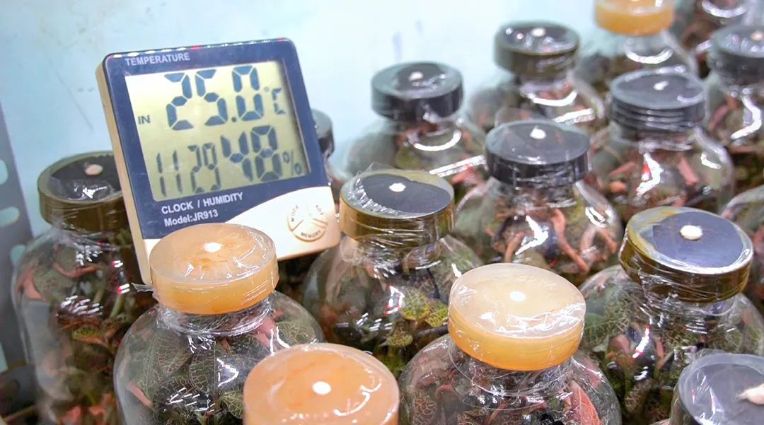 福建金農(nóng)生物工程有限公司負責(zé)人黃成:“我進入這個行業(yè)已經(jīng)14年了。我們組培完金線蓮,差不多到了6個月后,金線蓮高度達到瓶子的7分高,我們就賣給種植戶去種,還提供這些種植技術(shù)、病蟲害的管控?!?/p>
