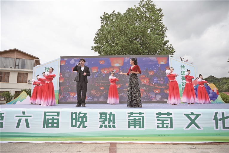 活動(dòng)現(xiàn)場(chǎng)通過(guò)文藝表演、晚熟優(yōu)質(zhì)葡萄王頒獎(jiǎng)、“‘萄’醉松羅·帶你趣玩”文旅路線發(fā)布等方式,多角度展示松羅人民的新生活、新氣象。晚熟優(yōu)質(zhì)葡萄展、萄“醉”松羅葡萄醋品鑒會(huì)、趣味主題嘉年華、葡萄果醋直播、葡萄采摘等環(huán)節(jié),則讓游客盡享鄉(xiāng)村田園風(fēng)情。