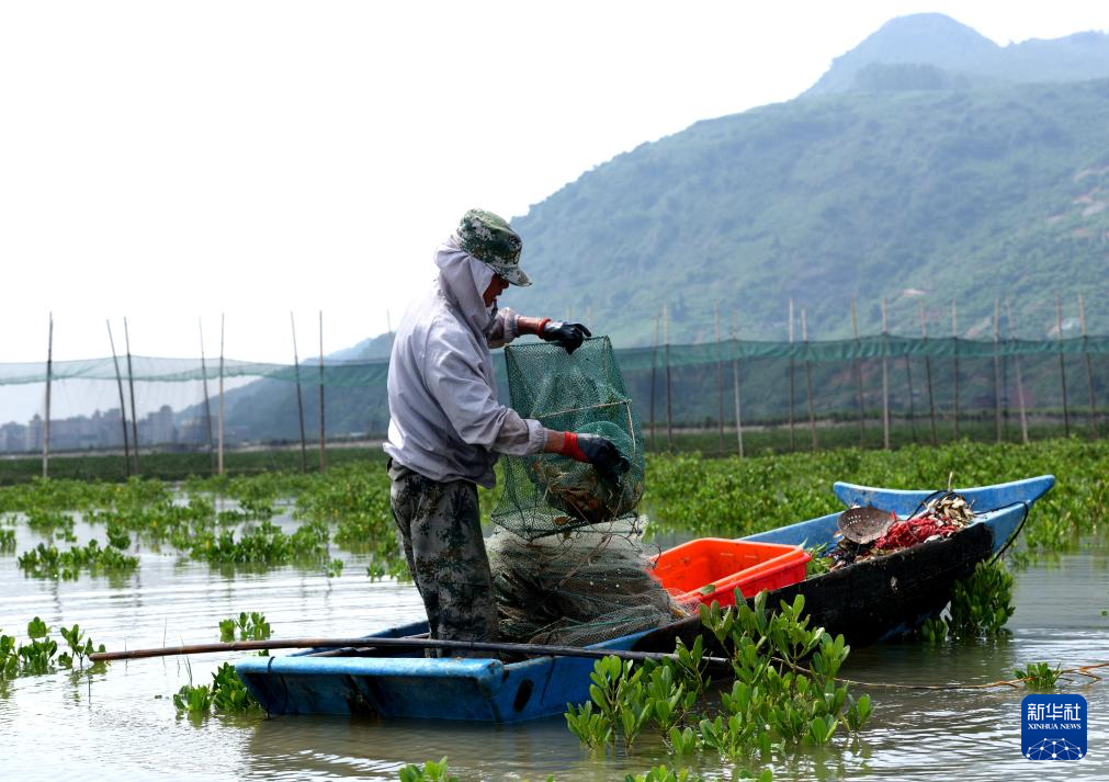 “秋風響,蟹腳癢”。連日來,福建連江縣馬鼻鎮(zhèn)浮曦村的百畝紅蟳養(yǎng)殖基地迎來豐收季,幾萬只在基地紅樹林灘涂上養(yǎng)殖的紅蟳開始捕撈上市。