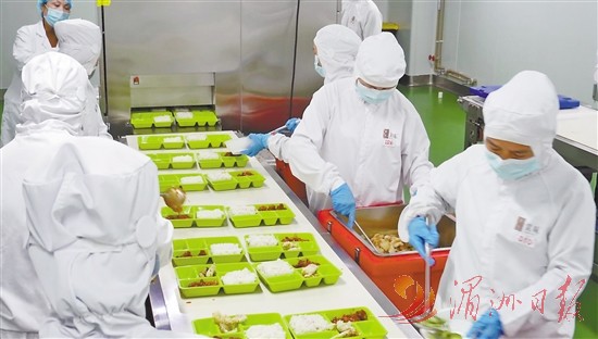 9月19日上午,在位于涵江區(qū)梧塘鎮(zhèn)的賞味央廚餐飲管理有限公司無(wú)菌車(chē)間內(nèi),1.8萬(wàn)份即食餐品正在抓緊制作。