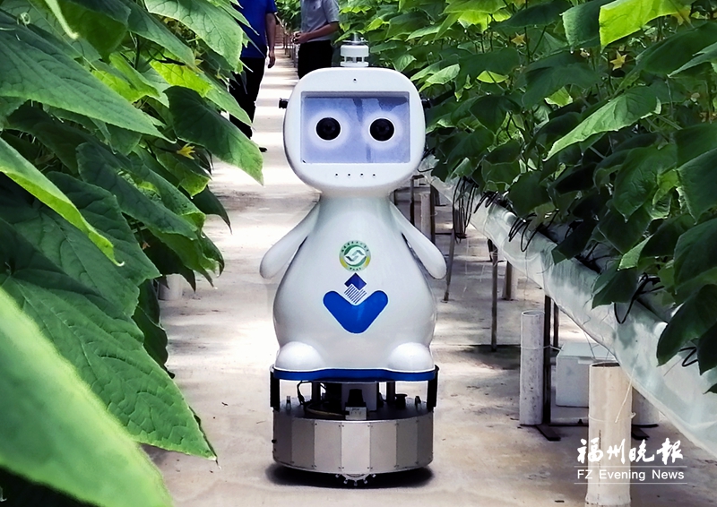 大棚里的高科技還有很多:配備濕簾風機,溫室內(nèi)熱空氣通過濕簾風機產(chǎn)生的小水分子吸熱蒸發(fā),降低溫室的溫度;人工智能農(nóng)業(yè)巡檢機器人“小?!弊兩怼稗r(nóng)戶”,巡邏并監(jiān)測作物生長情況和病蟲害等。