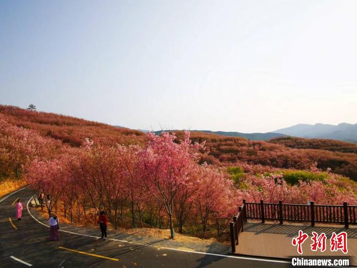 在三明市清流縣賴坊鎮(zhèn)姚家村,臺商簡文通打造的千畝櫻花園已成為清流臺灣農民創(chuàng)業(yè)園發(fā)展的見證和當地的一張燙金名片。今年2月,他種植的30萬株櫻花樹競相綻放,吸引游人約20萬人次于深山之中邂逅粉色花海。