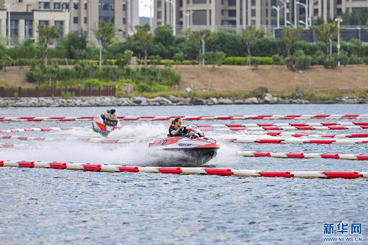 游客在體驗水上運動項目。新華網(wǎng)發(fā)( 林君斌 攝)