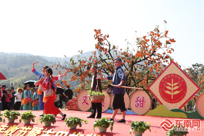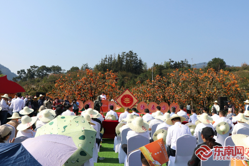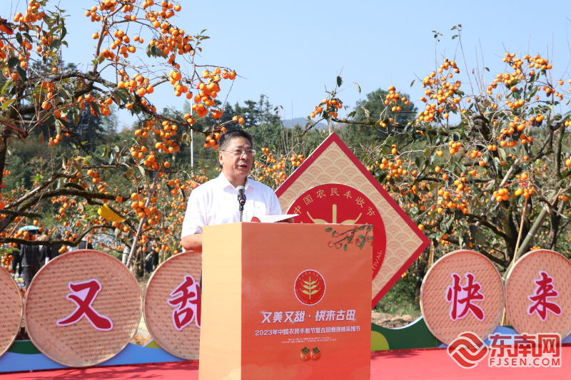 當(dāng)天上午,“又美又甜 快來古田” ——2023年中國農(nóng)民豐收節(jié)暨古田炮彈柿采摘節(jié)在寧德古田縣利洋村舉辦。