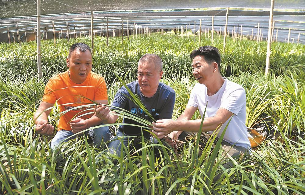 10月30日,在南平市建甌市順陽鄉(xiāng)溪東村石菖蒲中藥材基地,科技特派員謝?。ㄖ校┱谥笇?dǎo)林農(nóng)加強(qiáng)石菖蒲的日常管理。