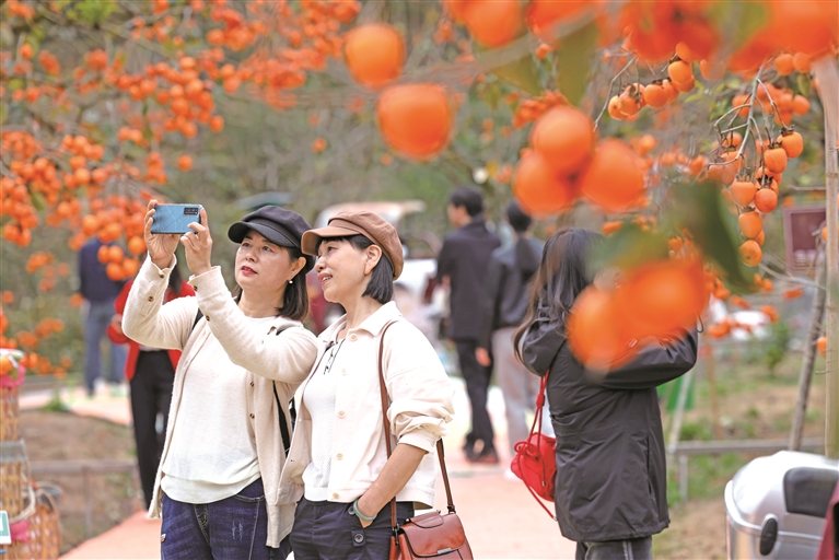 11月12日,游客在寧德市古田縣利洋村柿子園游玩。