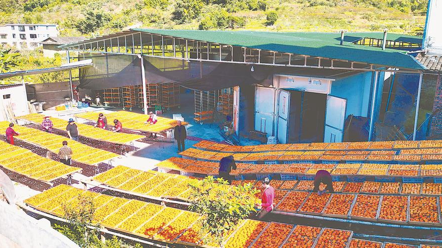 21日,在龍巖市永定區(qū)高頭鎮(zhèn)大嶺下村,多家柿餅加工廠正在加工柿餅,曬柿場(chǎng)成了一片金黃色的海洋。