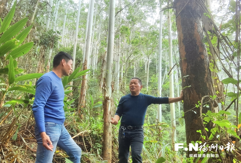 福州市福清市漁溪鎮(zhèn)東際村連綿起伏的山嶺深處,筆直挺拔的巨尾桉如同列陣的衛(wèi)士佇立,一眼望不到頭。