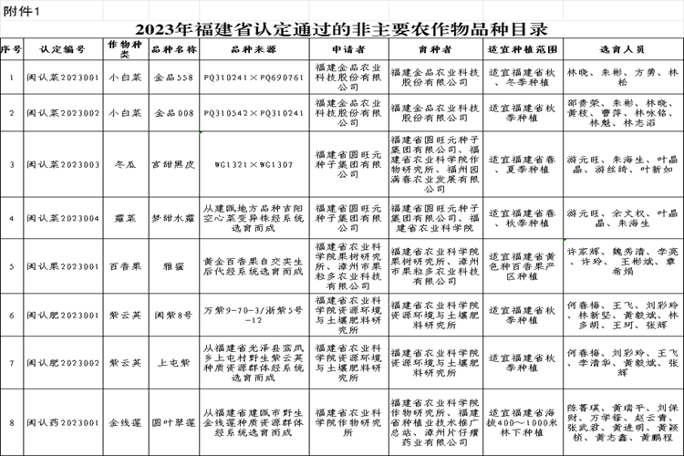 附件:1.2023年福建省認(rèn)定通過(guò)的非主要農(nóng)作物品種目錄