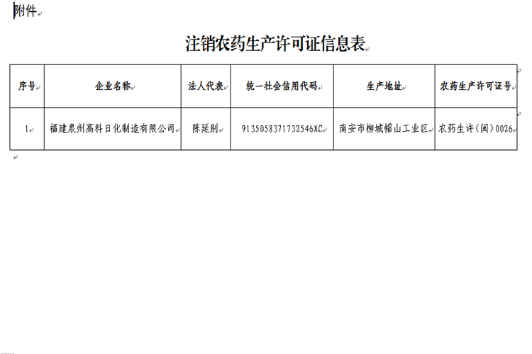 附件:注銷農(nóng)藥生產(chǎn)許可證信息表