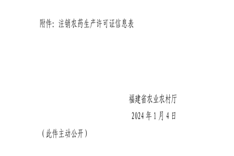 福建省農(nóng)業(yè)農(nóng)村廳關于注銷相關企業(yè)農(nóng)藥生產(chǎn)許可證的通告
