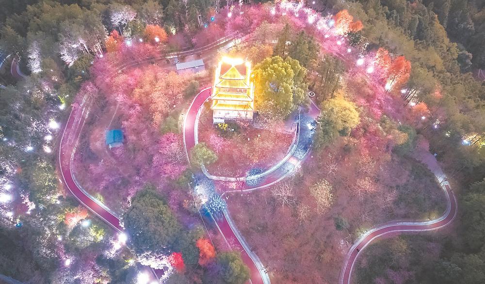 近日,在泉州市德化縣唐寨山森林公園,如云似霞的櫻花與休閑綠道交織在一起,構(gòu)成了一道亮麗的風(fēng)景。