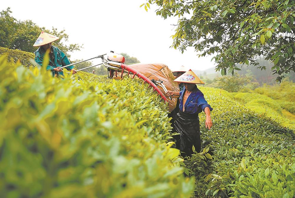 26日,在南平市浦城縣忠信鎮(zhèn)桃園村,茶農(nóng)使用采茶機采收茶葉。眼下,浦城縣3.34萬畝茶園全面進入采摘期,茶農(nóng)和茶企工人搶抓時機采摘加工茶葉。