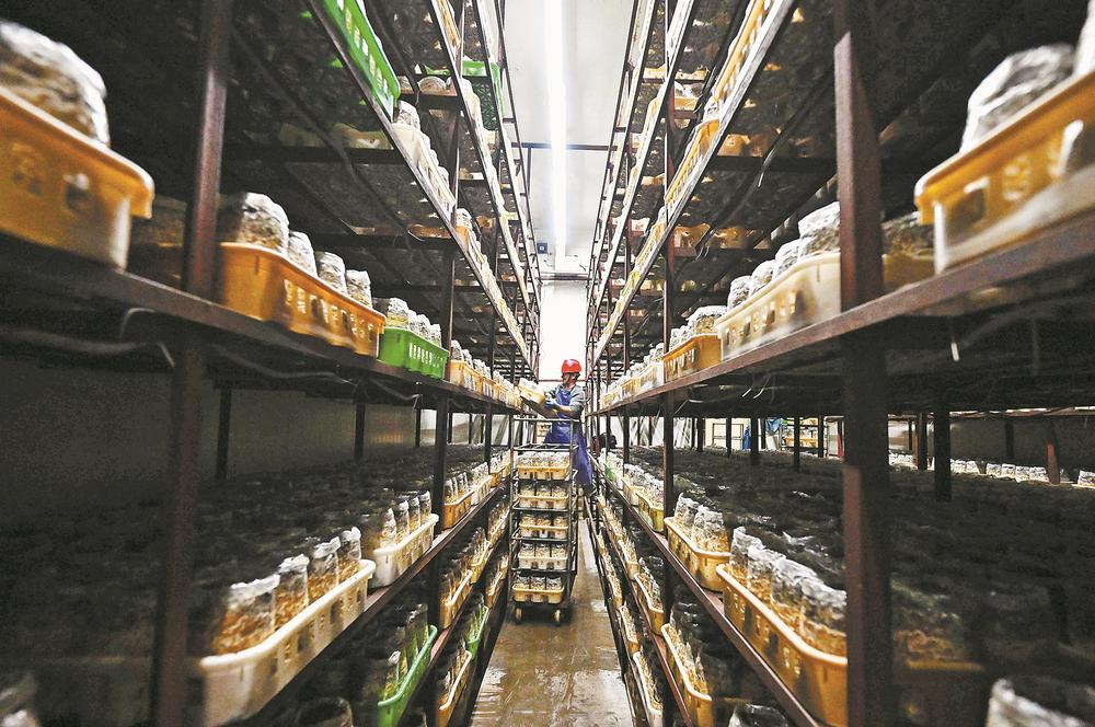 該公司采用新技術(shù)和先進(jìn)機械設(shè)備,模擬食用菌生長所需的自然環(huán)境,實現(xiàn)全年出菇,日產(chǎn)鹿茸菇鮮品20噸,年產(chǎn)值近5000萬元。