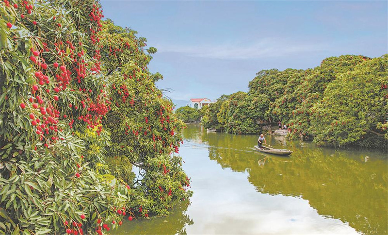 莆田市涵江區(qū)白塘鎮(zhèn)雙福村至今生長(zhǎng)著10棵700年以上的古荔枝樹。一排排古荔枝樹沿河岸生長(zhǎng),和拱橋、泊船構(gòu)成了一幅荔林水鄉(xiāng)寫意畫。連日來(lái),慕名而來(lái)的游客在這里泛舟游憩、體驗(yàn)水上采摘荔枝、品古荔賞古厝、參加荔枝文化節(jié)、打卡荔枝宴,“荔枝游”風(fēng)生水起。
