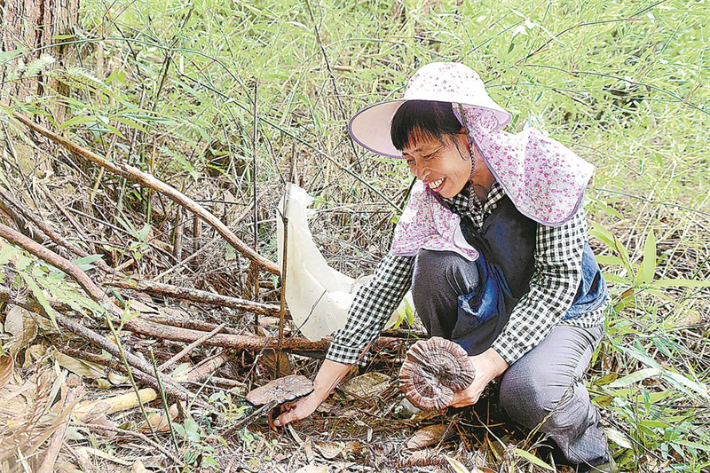 近日,在泉州市德化縣楊梅鄉(xiāng)云溪村溪坪角落的山林里,村民在采收靈芝。據(jù)景暉種養(yǎng)農(nóng)民專業(yè)合作社負(fù)責(zé)人林月添介紹,去年合作社開始嘗試林下種植靈芝10多畝,今年種植面積達(dá)50畝,近2000株,預(yù)計(jì)可采摘曬干后的靈芝150斤,帶動(dòng)當(dāng)?shù)?戶貧困戶近10人就業(yè)。