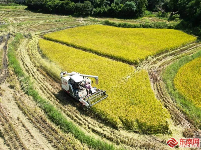 機(jī)械化收割稻谷 浦城縣融媒體中心供圖