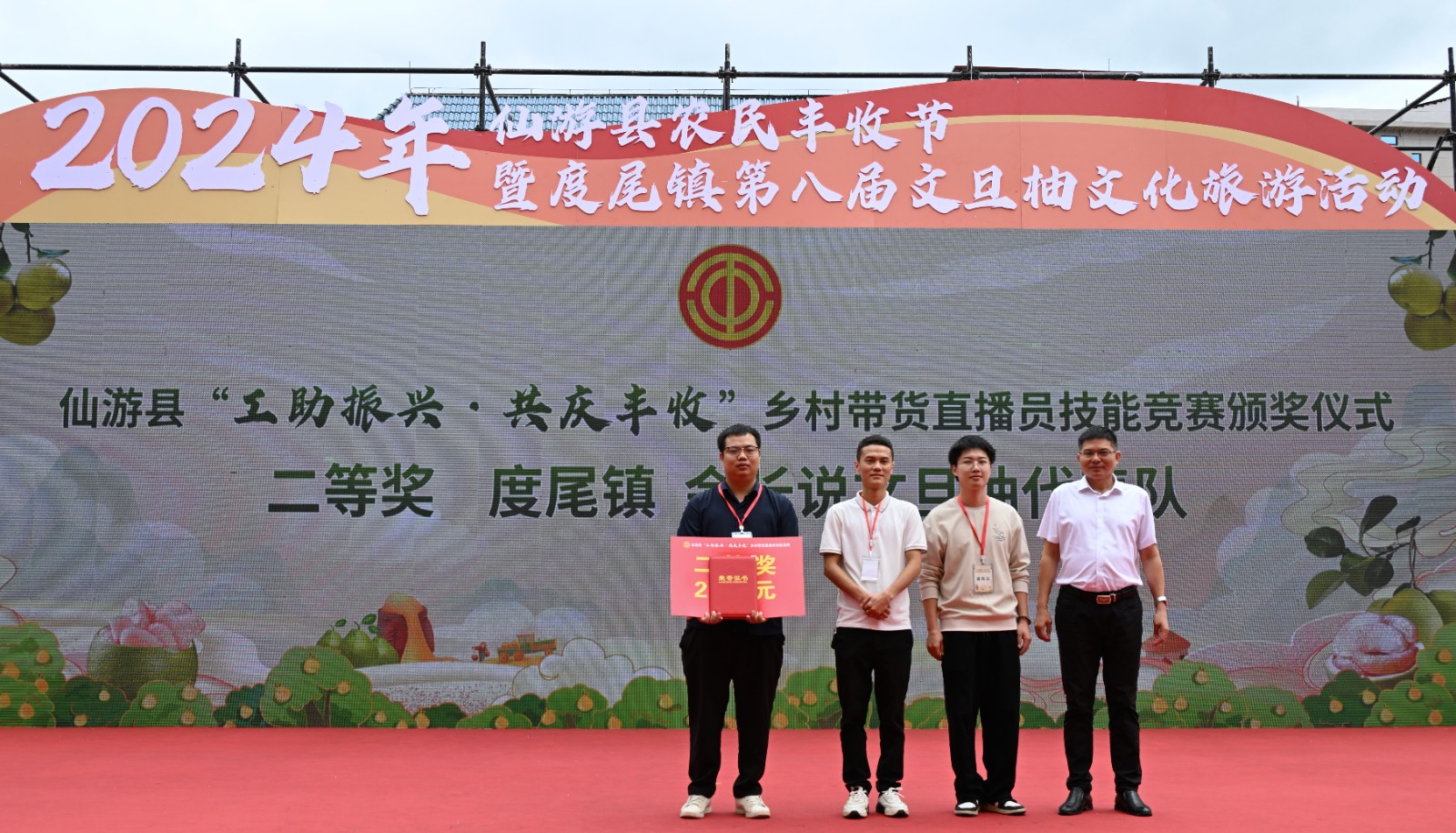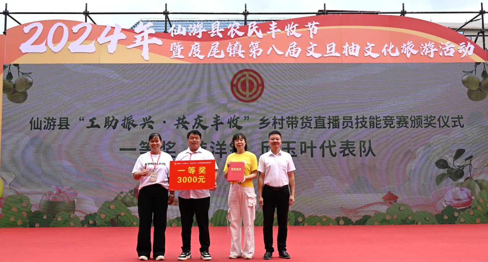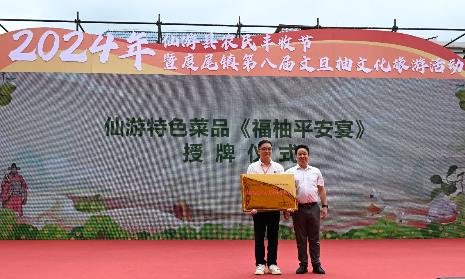 出席活動的領導嘉賓共同推動啟動儀式推桿,隨著卷軸緩緩展開,2024年仙游縣農(nóng)民豐收節(jié)暨度尾鎮(zhèn)第八屆文旦柚文化旅游節(jié)正式啟動。