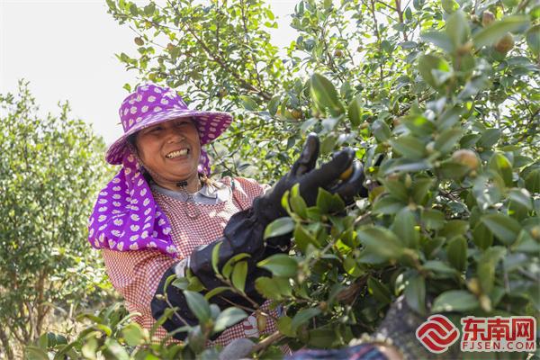走進(jìn)寧化縣淮土鎮(zhèn)磜下村,一片片綠意盎然的油茶林映入眼簾,油茶樹(shù)上掛滿(mǎn)了沉甸甸的茶果,村民們正忙著采摘,現(xiàn)場(chǎng)一片繁忙而喜悅的豐收景象。