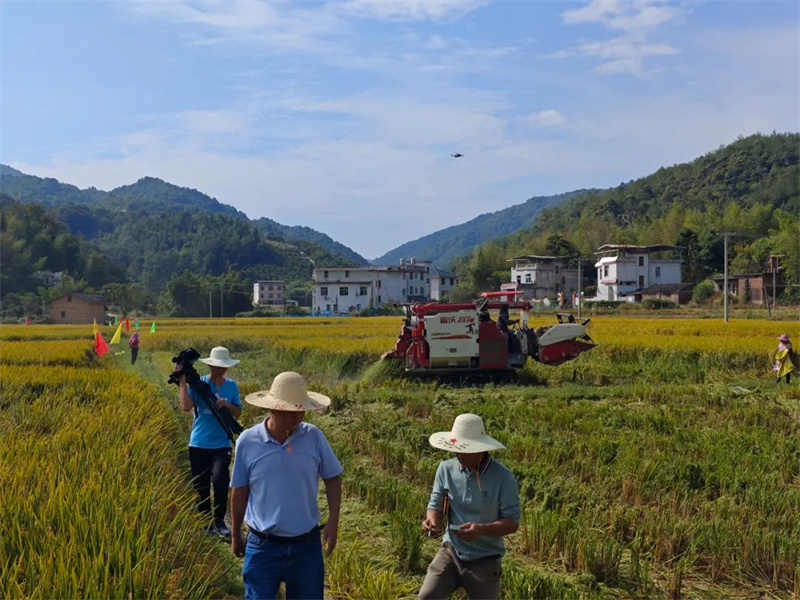 “997.75公斤!”。近日,省、市農業(yè)農村部門組織有關專家對上杭縣九碗家庭農場承擔實施的龍巖市糧食生產專項——糧油綠色高質高效示范片進行現場測產驗收,單季晚稻畝產近噸糧,較去年930.38公斤增產67.37公斤。驗收組專家對示范片的建設給予了高度評價,一致認為示范片田間表現群體整齊、后期轉色好、病蟲害發(fā)生少、產量高,示范片建設再獲佳績。
