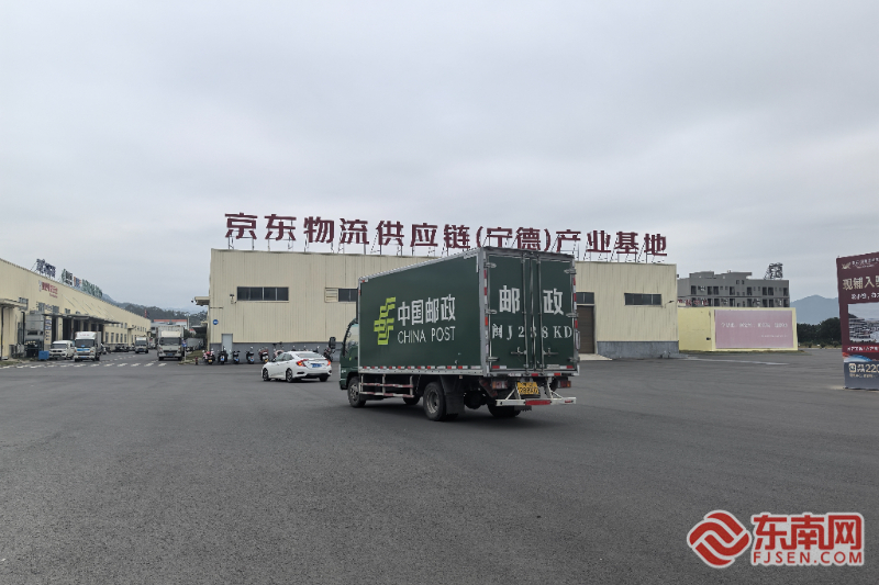 霞浦京東智慧物流產(chǎn)業(yè)園內(nèi),快遞車源源不斷的進出。受訪者供圖