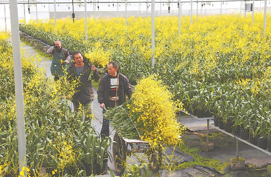 淡雅的花香撲面而來,驅(qū)散了身上的寒意。年關(guān)將至,文心蘭越發(fā)緊俏,白德壽忙著整理手里的訂單,臉上樂開了花。