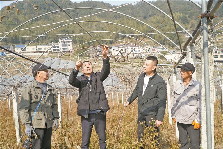 日前,市農(nóng)科所教授級高級農(nóng)藝師鄭宜清對福安市仙之洋種植專業(yè)合作社的葡萄、獼猴桃冬季修剪進(jìn)行指導(dǎo)。眼下,正是冬季果園管理的關(guān)鍵時(shí)期,連日來,福安市廣大果農(nóng)搶抓晴好天氣開展果樹冬剪工作,為豐產(chǎn)豐收打下基礎(chǔ)。陳容 攝