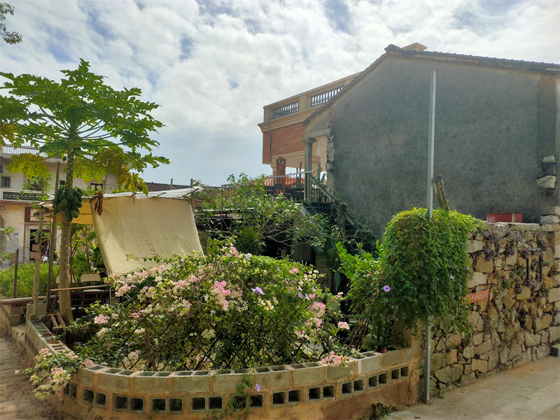 該庭院由鐘楚佳和方麗玲兩位“新農(nóng)人”認(rèn)領(lǐng)改造古舊老厝,對(duì)原本雜草叢生的老宅庭院進(jìn)行翻修整理,在庭院種植了有30多種的香料花草,命名“百草園”,不僅美化了整個(gè)庭院,使庭院春意盎然,又可以作為烹飪的輔助材料,為菜肴增添新的美味。利用閑置的墻體打造成多肉墻,將庭院打造成游客旅行拍照打卡點(diǎn)庭院打造獨(dú)具特色。