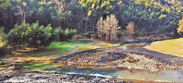 趁著冬日晴好,漫步福鼎市管陽鎮(zhèn)楮樓村,溪水清澈如鏡,碇步橋橫跨其上,溪邊古樹參天、楓林如畫,山水花樹交織相融的美景,被網(wǎng)友們贊為福鼎版的“阿勒泰”。